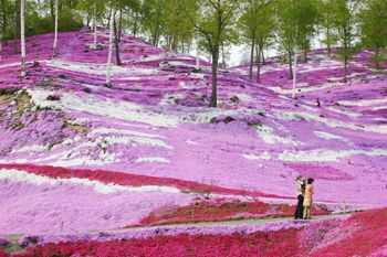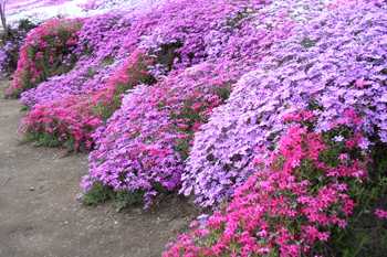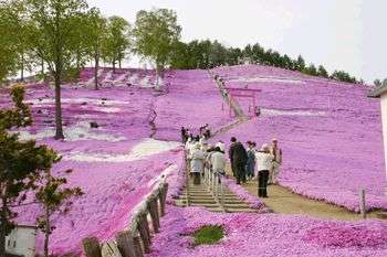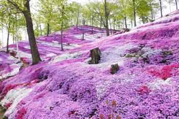 5月上旬~6月上旬にかけて滝上公園一面に咲き誇る芝ざくらは、1957年(昭和32年)にみかん箱一杯の芝ざくらの苗を滝上公園の入り口に植えたのが始まり。それから毎年増殖し、今では10万平方mの大群落になった。そのスケールは、日本最大規模を誇る。