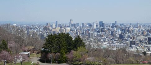 旭山記念公園から望む札幌市内(2021年4月撮影)
