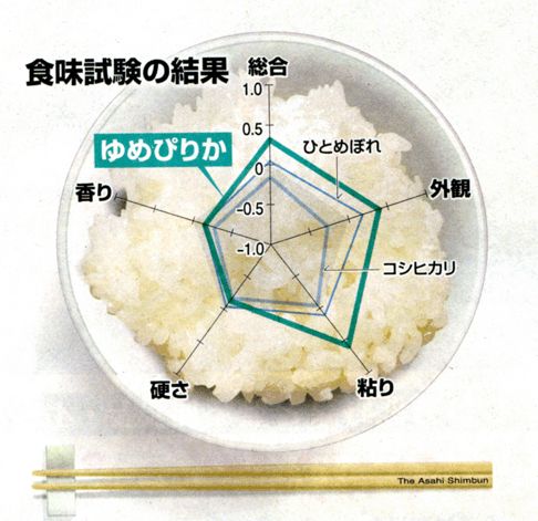 ゆめぴりかとななつぼしは、日本穀物検定協会の食味ランキングで道産米で初めて最高ランクの「特A」に入った。北大大学院とホクレン農業総合研究所が2009年に首都圏と札幌で実施した大規模な食昧試験でも、ゆめぴりかは1位に輝いた。最大の要因は「粘りの強さ」だ。日本人がおいしいと感じるのは、粘りがあってほどよく軟らかいコメとされる。粘りを左右するのは、でんぷんの一種であるアミロースの含有率で、少ないコメほど粘りが出る。昔の道産米のアミロース含有率は20%ほどだが、ゆめぴりかは15%%前後。品種改良で低アミロース化に成功した。低アミロース米は他にもあるが、香りが悪いといった欠点が出ることもある。だが、ゆめぴりかは弱点が少ない。同研究所の吉田慎一主査は「つや感の良さや、冷めても食感が良い点なども優れている」と言う。食味試験をした北大大学院の川村周三准教授は語る。「30~40年前の道産米を知る人からすれば奇跡のような進歩だ」。