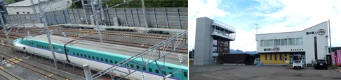 道の駅しりうちに新幹線展望塔が付設され、通過する新幹線を見ることができる。
