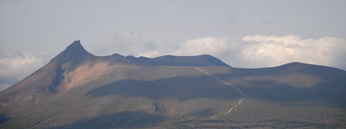 八雲町を代表する山で標高999.3m。登山は鉛川の登山口(町営温泉おぼこ荘上の旧高山事務所跡地)から頂上まで約4.05kmあり、銀雄の滝(銀山沢にある一条に落ちる滝)、海見平(日本海と太平洋が一望できる)、6月下旬~7月上旬まで山の壁下に雪が残る、など沢筋に沿って登る要所要所に見所がある。所要時間は登りが3.5時間、下りが2.5時間。中級クラス層以上が対象の山。落石に注意。