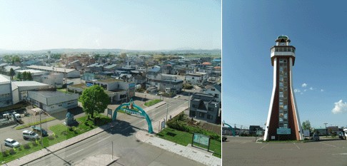 開基百年記念塔と秩父別町市街(2013年5月撮影)
