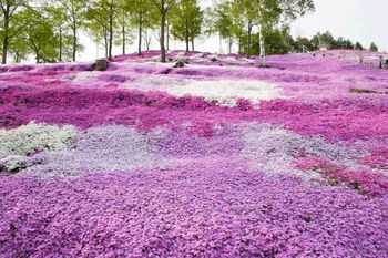 5月上旬~6月上旬にかけて滝上公園一面に咲き誇る芝ざくらは、1957年(昭和32年)にみかん箱一杯の芝ざくらの苗を滝上公園の入り口に植えたのが始まり。それから毎年増殖し、今では10万平方mの大群落になった。そのスケールは、日本最大規模を誇る。