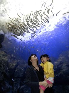 オホーツク流氷館には、本物の流氷を展示、水槽にはクリオネが生息している。