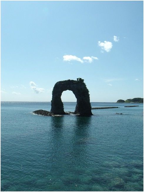 飢餓に苦しむ親子の熊が海に転落して命を落とし、それを見ていた海の神様が、親子熊を哀れんで親子の深い愛情をかわす姿をそのまま岩に変身させたとの言い伝えの親子熊岩である。大成町のシンボルとなっている。