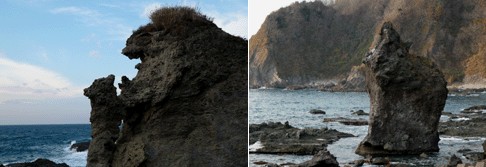 奇岩「親子熊石」と「タヌキ岩」(2007年11月撮影)