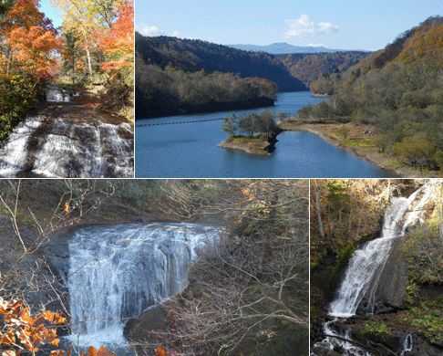 上左 ラルマナイの滝 上右 えにわ湖 下左 白扇の滝 下右 三段の滝
