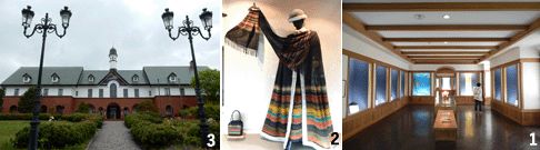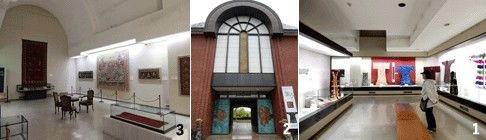 1 展示室 2 国際染織美術館入口 3 展示室(2015年5月撮影)