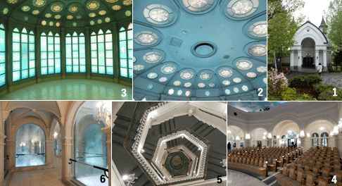 1 雪の美術館入口 2 クリスタル天井 3 クリスタルルーム 4 音楽堂 5 地下へ続く階段 6氷の回廊(2015年5月撮影) |