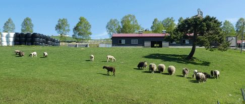 見本林の中には管理人の古い家と、赤い屋根のサイロと牛舎が建っていた。