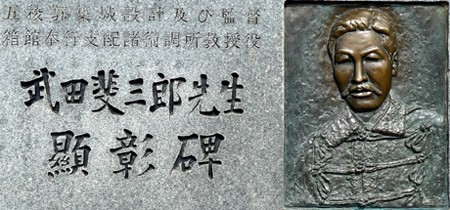 五稜郭はわが国初めての洋式築城で、1857年(安政4年)着工、7年の歳月を費やして1864年(元治元年)に竣功した。のち旧幕府脱走軍がこの城に拠り箱館戦争の本城となった。築城100年記念にあたってこの碑を建てた。