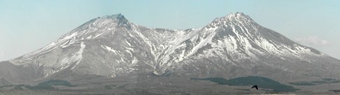 八雲町を代表する山で標高999.3m。登山は鉛川の登山口(町営温泉おぼこ荘上の旧高山事務所跡地)から頂上まで約4.05kmあり、銀雄の滝(銀山沢にある一条に落ちる滝)、海見平(日本海と太平洋が一望できる)、6月下旬~7月上旬まで山の壁下に雪が残る、など沢筋に沿って登る要所要所に見所がある。所要時間は登りが3.5時間、下りが2.5時間。中級クラス層以上が対象の山。落石に注意。