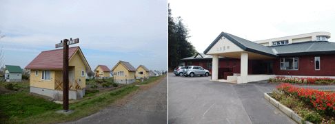 (左)クラインガルテン (右)クラインガルテン管理棟(土里夢館)